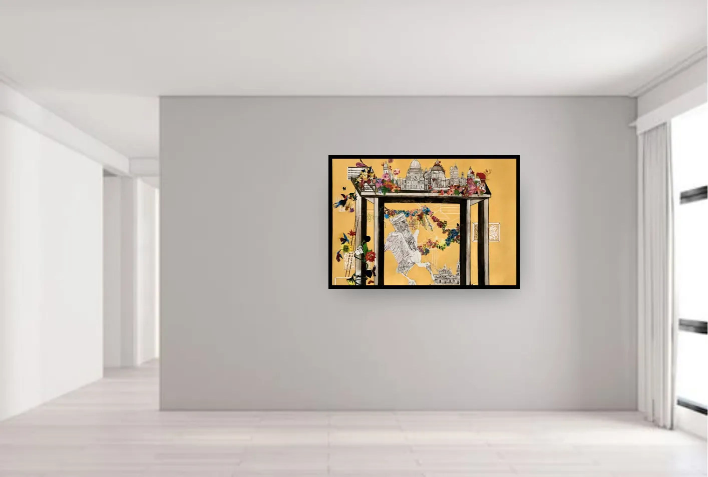 Acrylic, oil pastels and gold