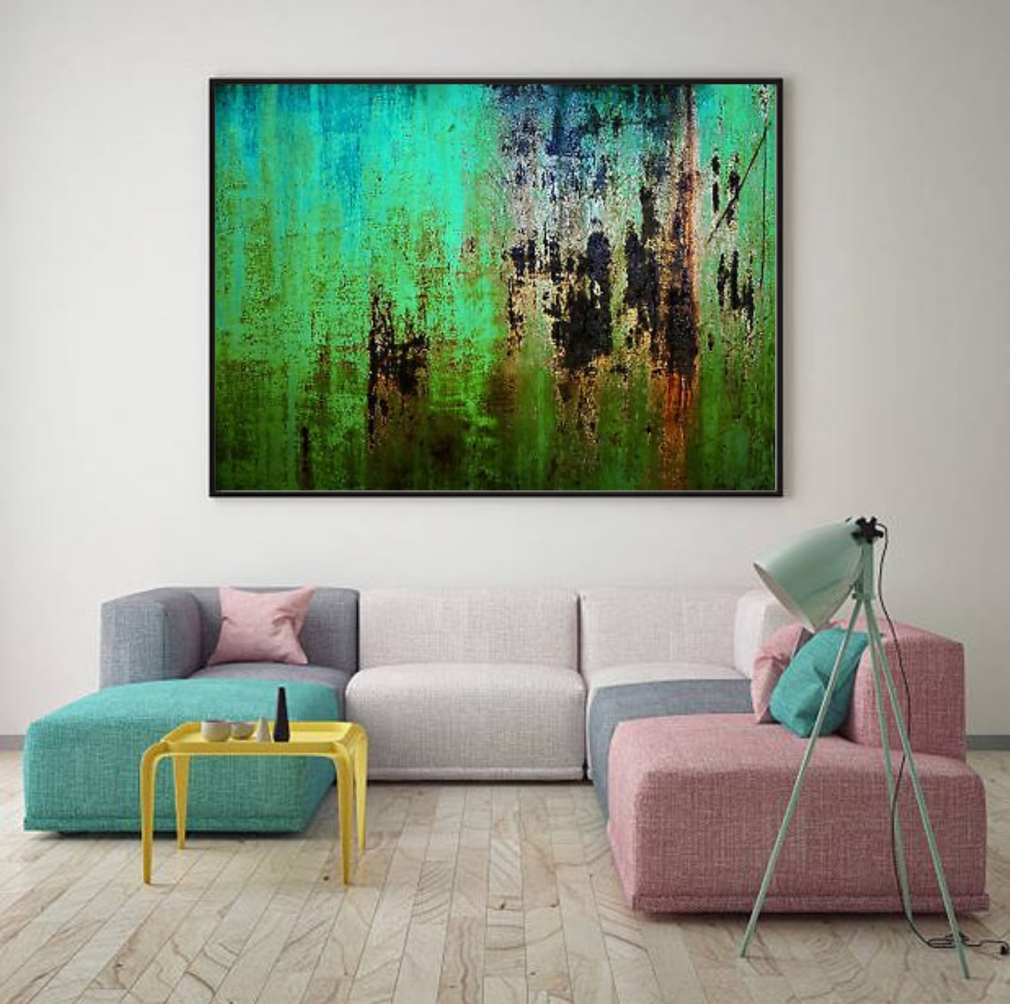 Forest Vibration resonates with the deep, rhythmic pulse of the natural world, conveyed through rich green tones and textured forms. This abstract painting captures the essence of a forest’s vibrant energy, inviting viewers to experience its serene yet dynamic essence.