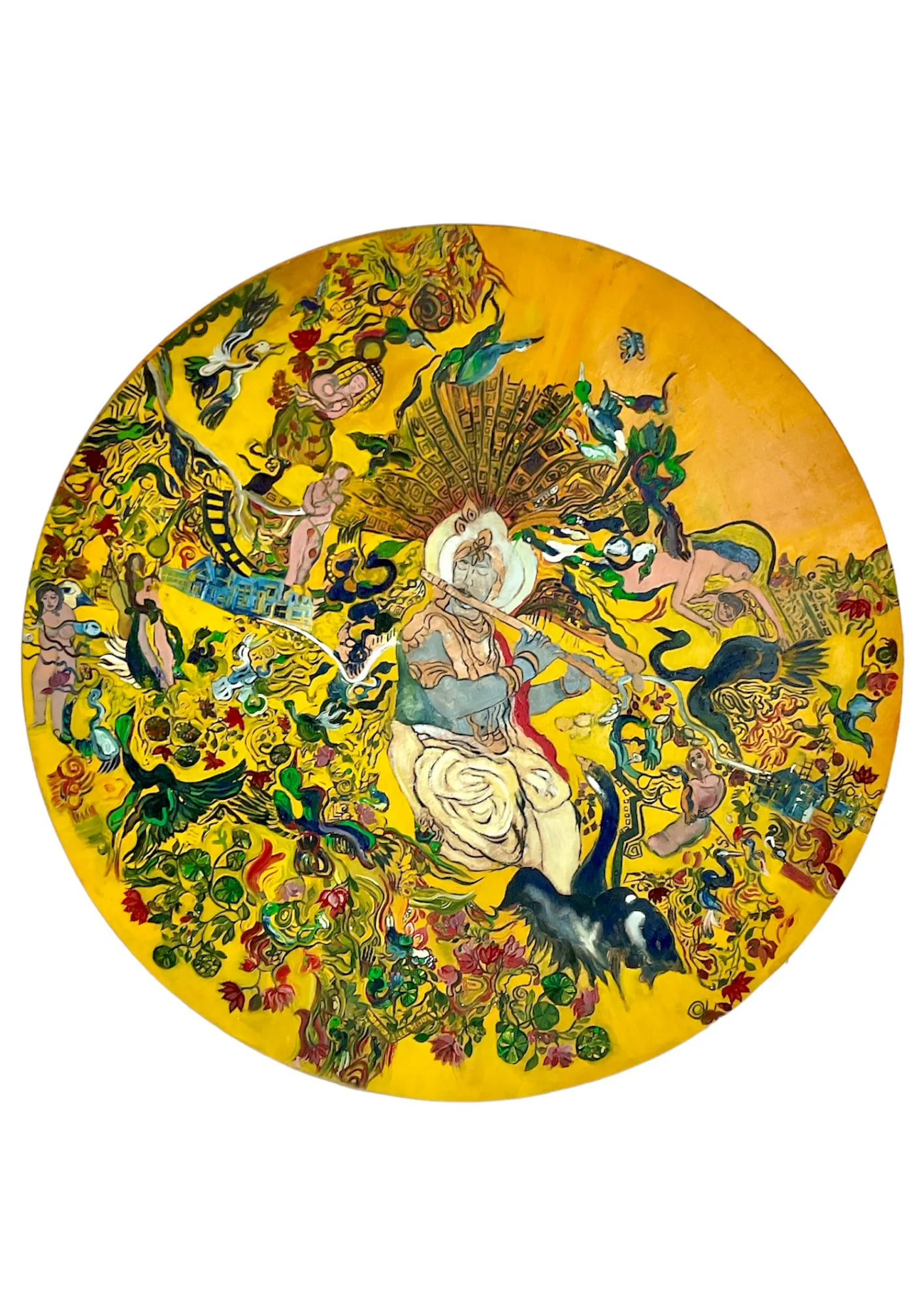“Leela” is a captivating piece that explores the intricate dance of life through vibrant colors and dynamic forms. The painting’s title, derived from a Sanskrit word meaning ‘play’ or ‘divine play,’ reflects the artist’s intention to depict the playful and spontaneous nature of existence. The artwork captures a moment of joyous expression, inviting viewers to immerse themselves in the fluidity and movement that characterize the composition.