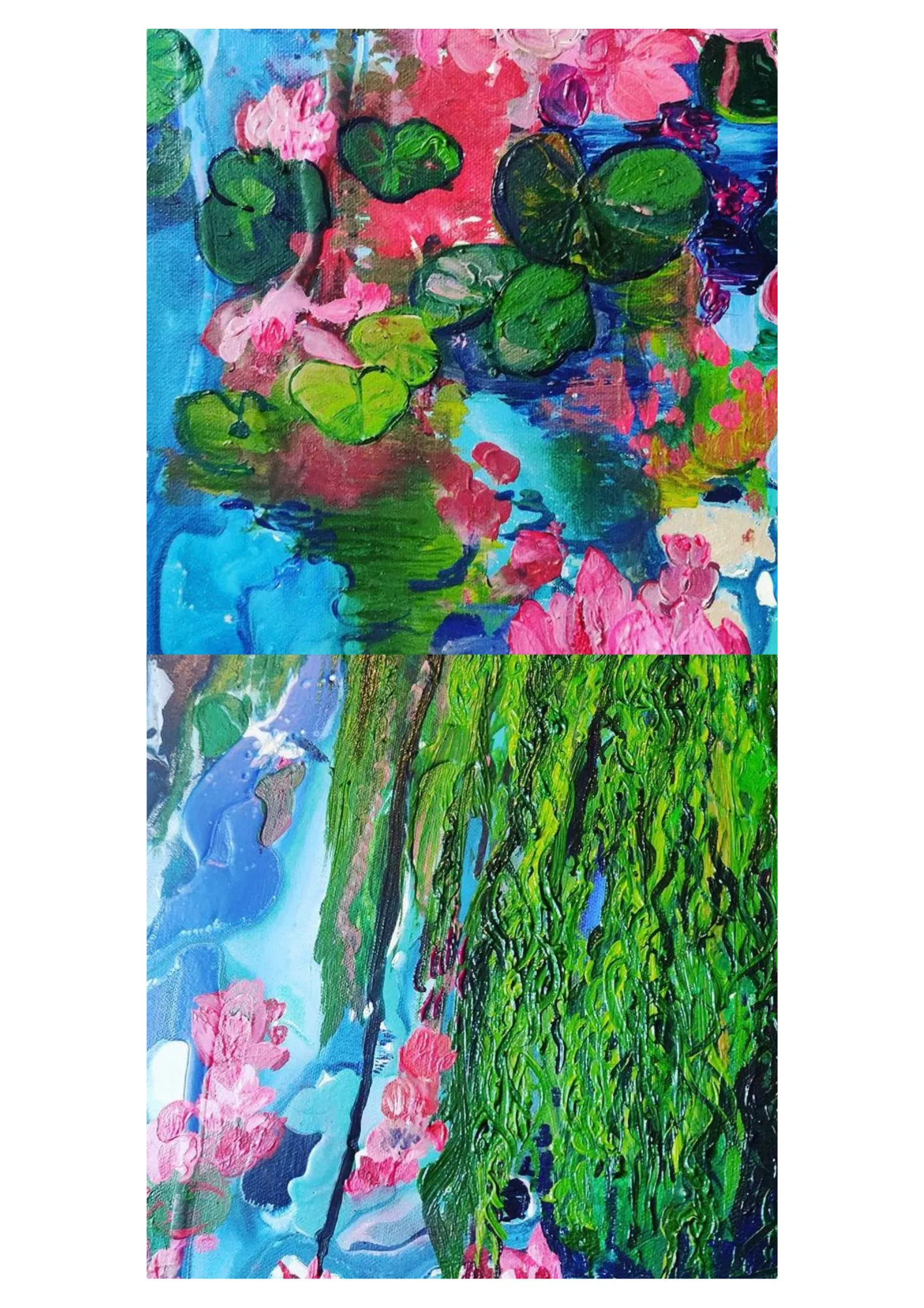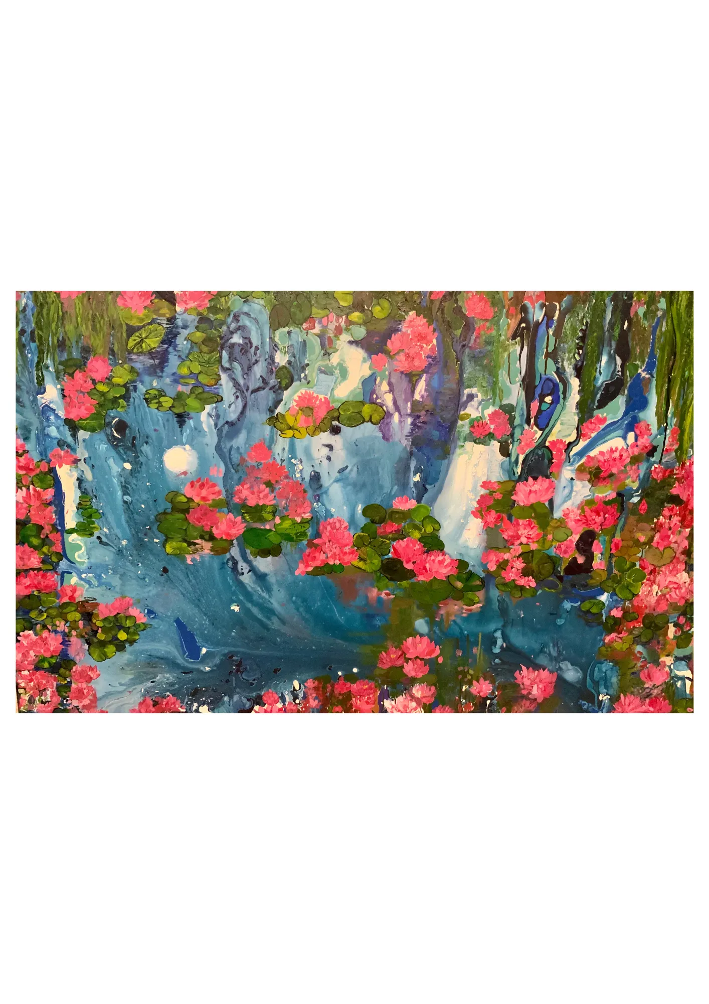 seem to drift effortlessly across the surface. This piece invites the viewer to immerse themselves in the peaceful rhythm of nature, where each lily embodies the gentle harmony between water